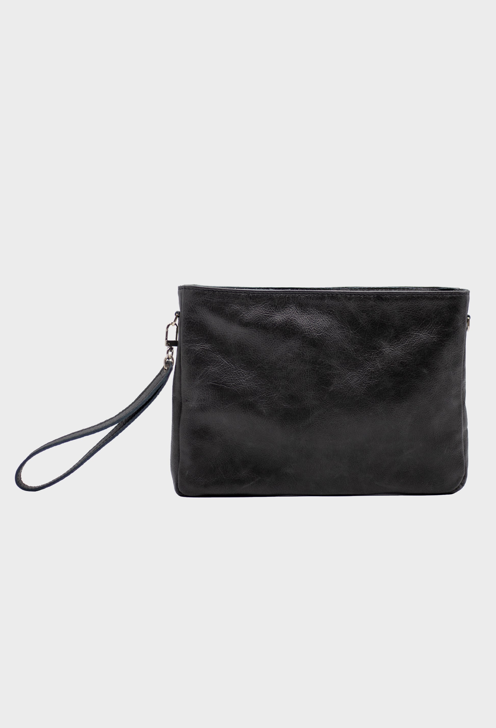 PROMOZIONE ATTIVA FINO AL 14/12 Pochette Unisex in pelle nera effetto invecchiato. Tasca segreta per AirTag