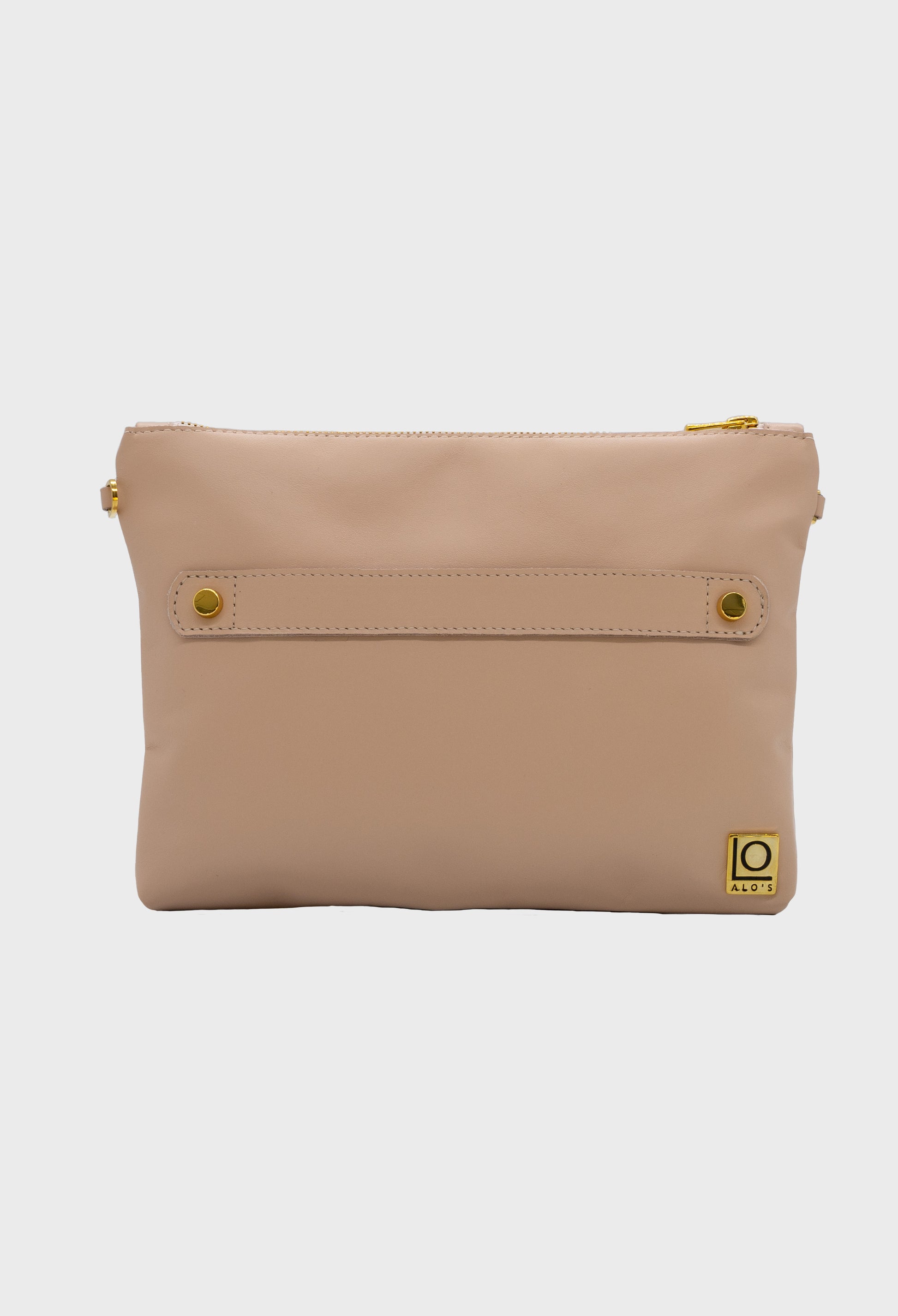 Pochette in vera pelle di vitello liscia Cipria