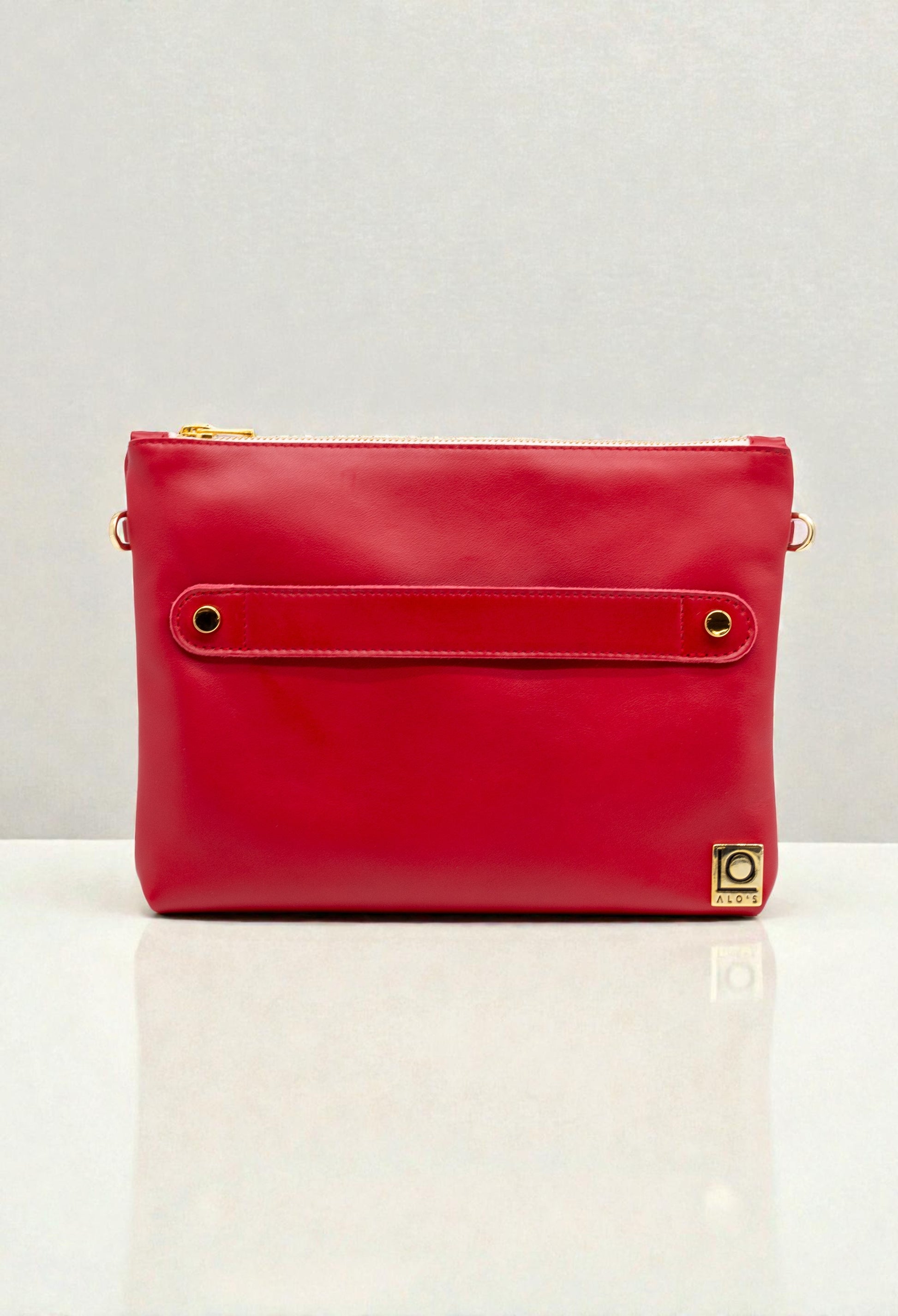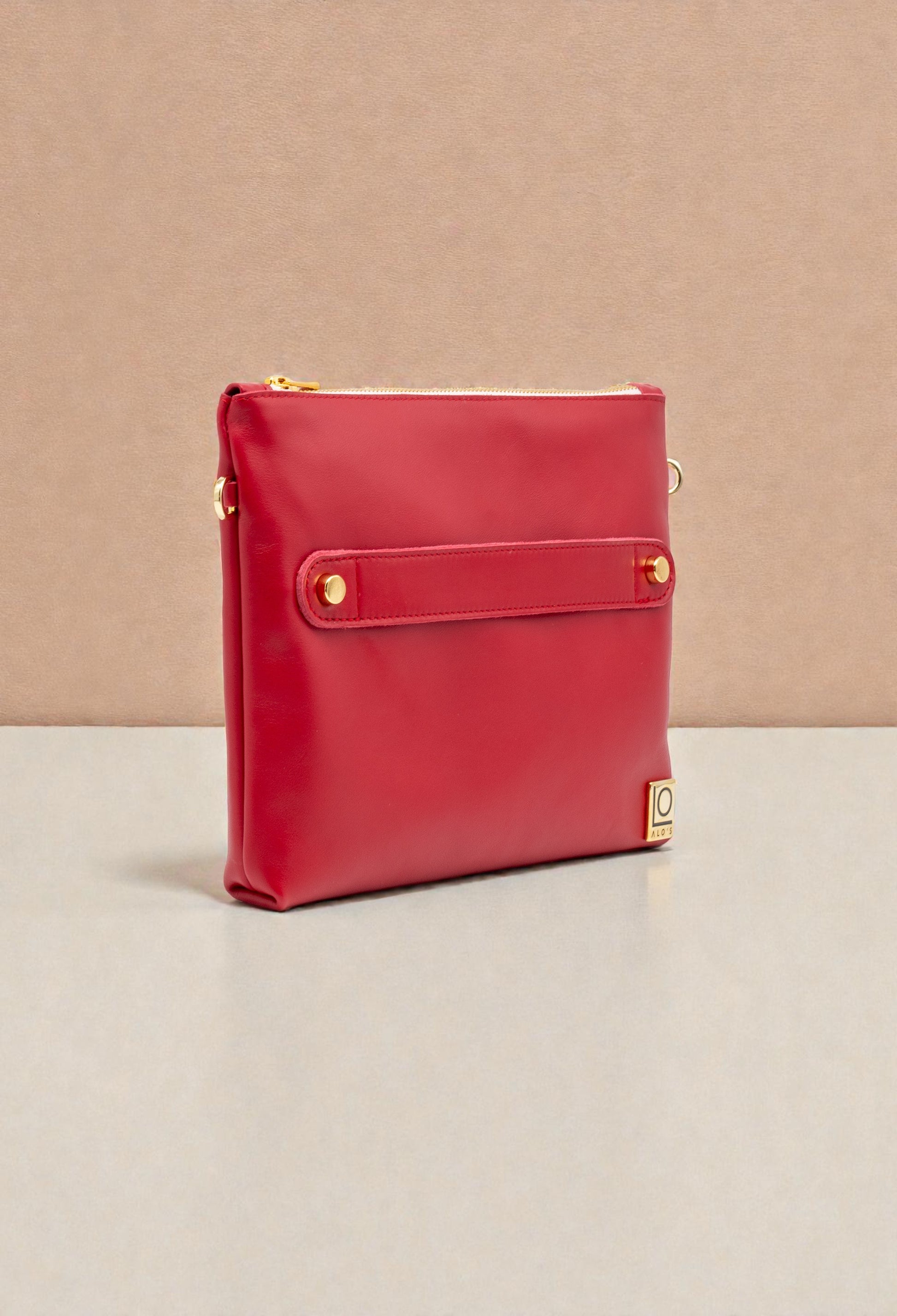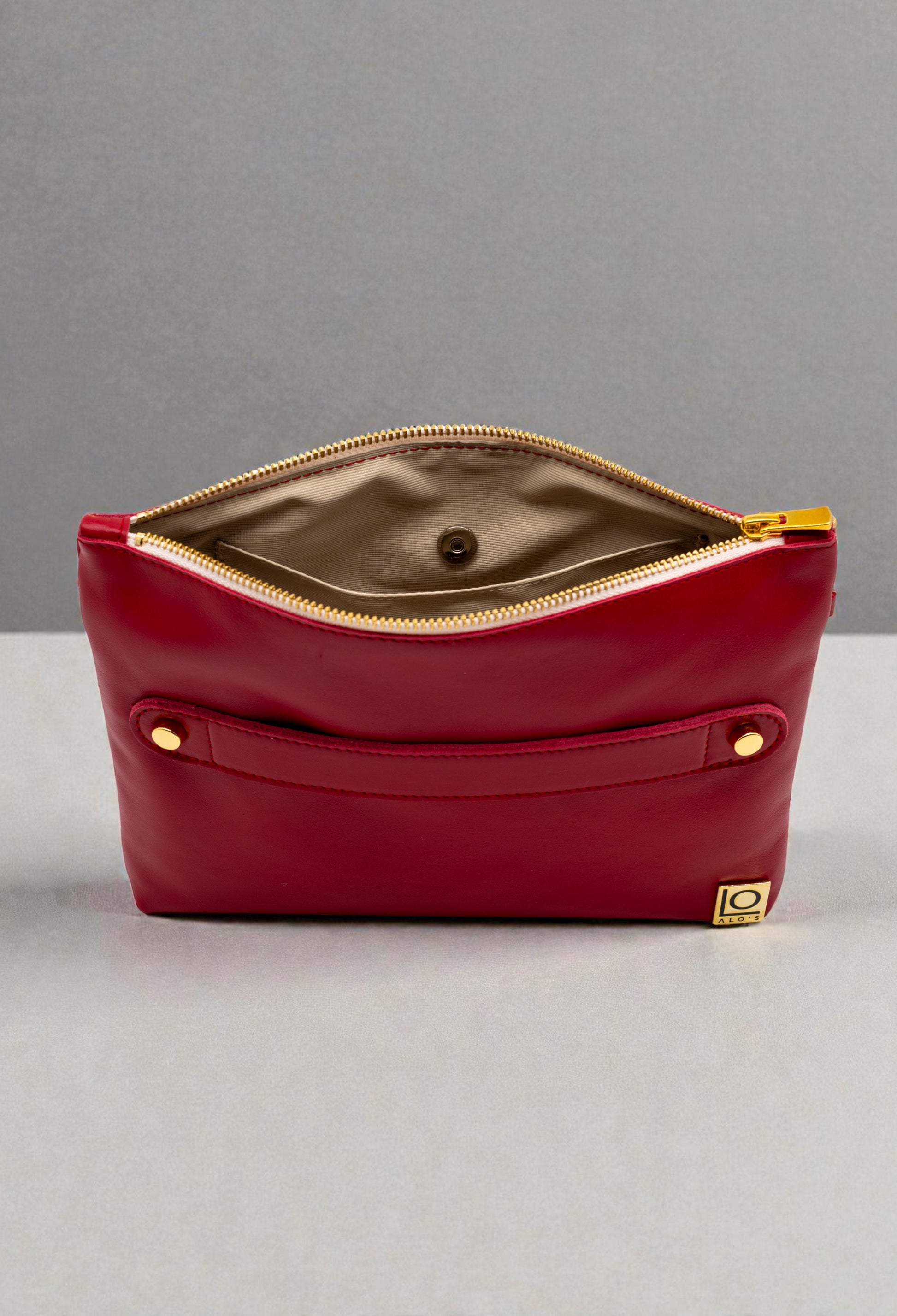 Pochette in vera pelle di vitello liscia colore rosso Ciliegia