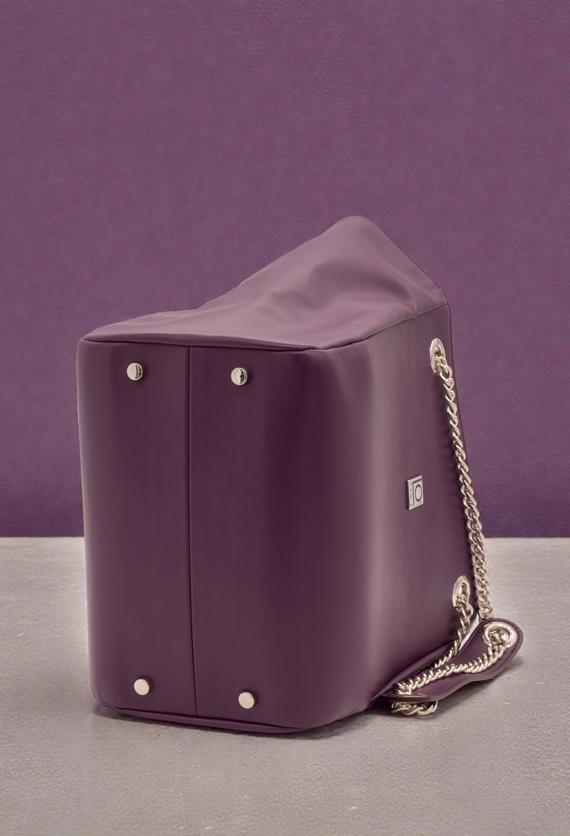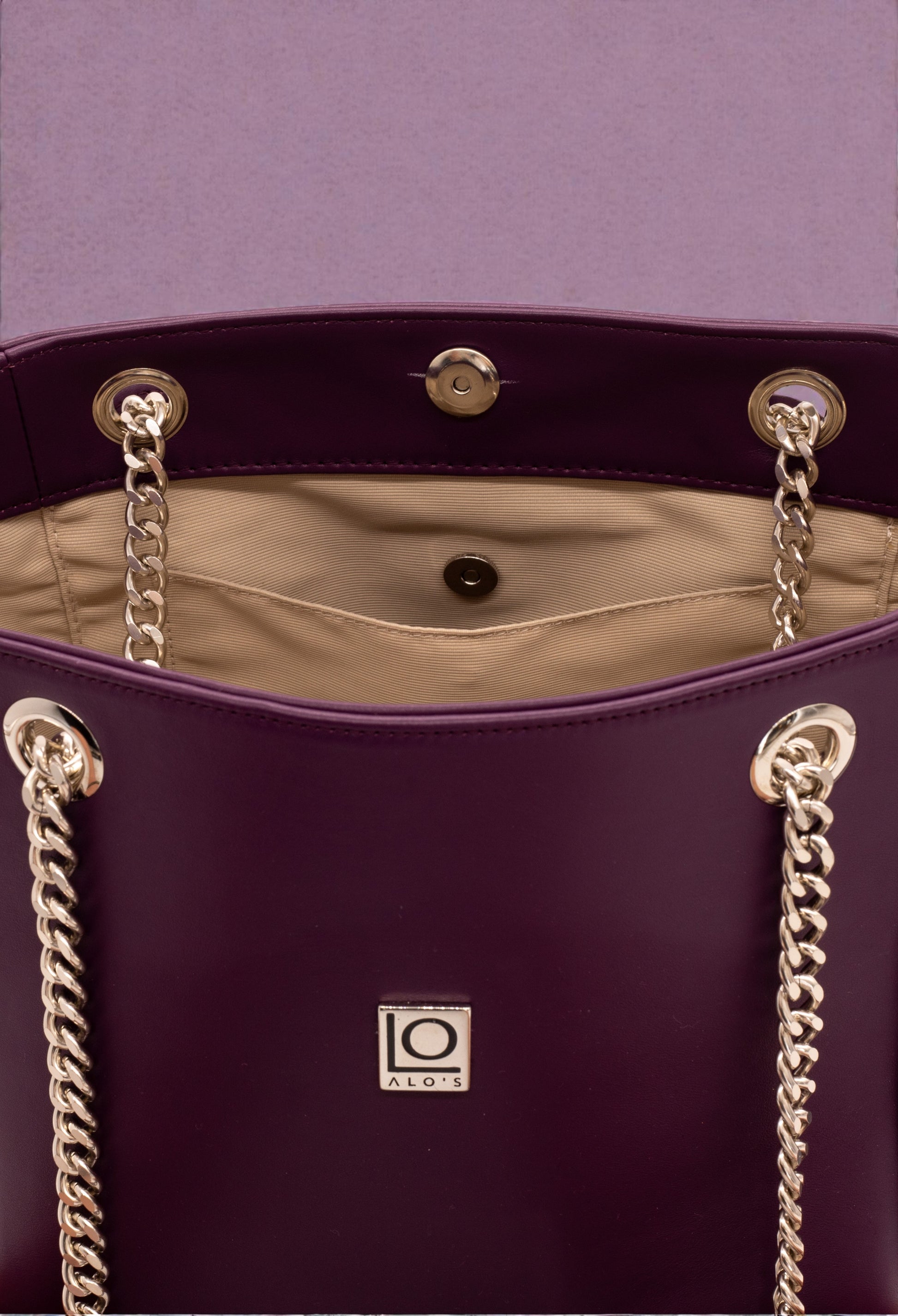 Indossabile a spalla o crossbody facendo scorrere la catena attraverso gli occhielli.