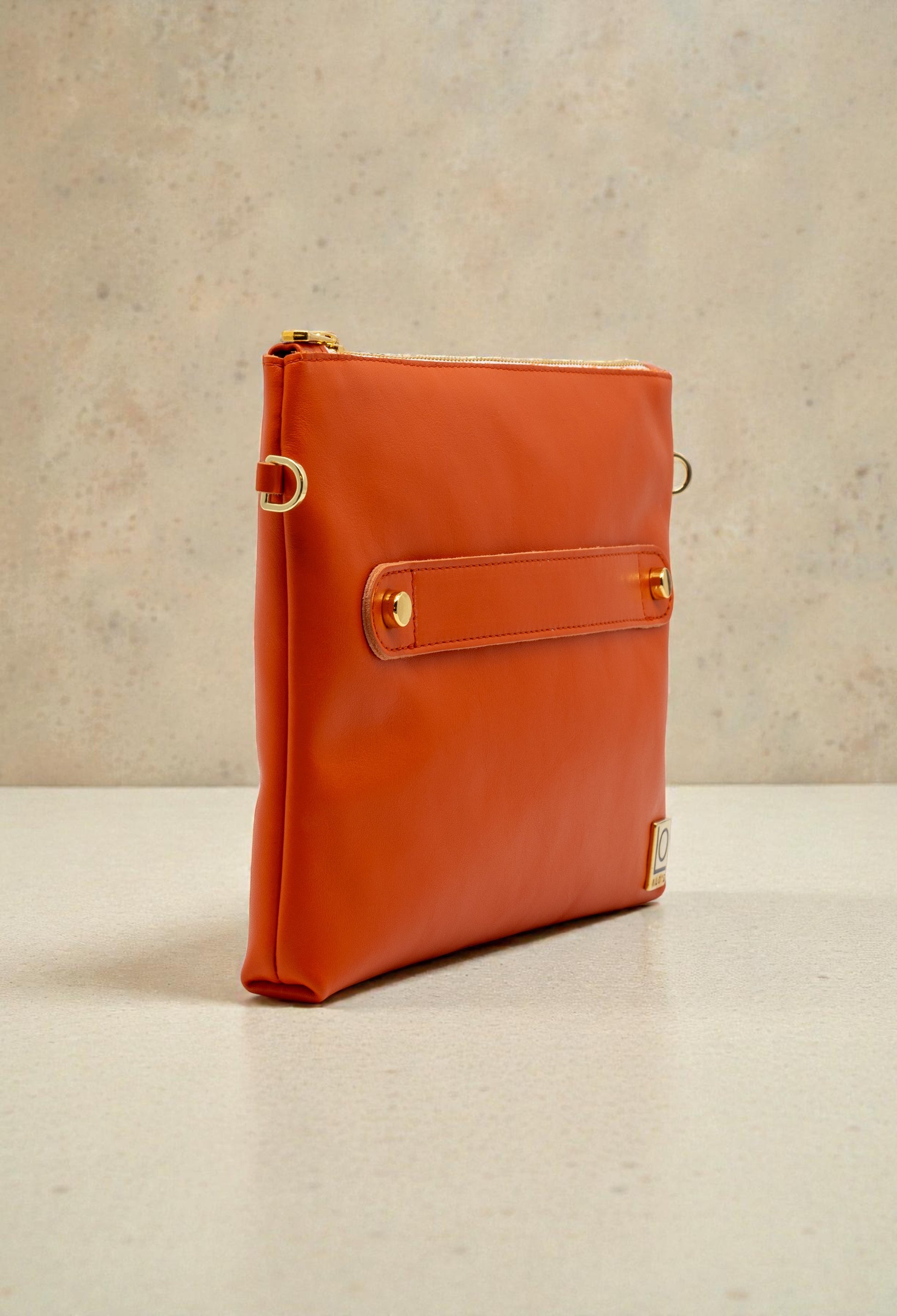 Pochette in vera pelle di vitello liscia colore Pumpkin